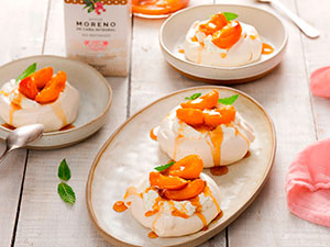 En esta versión individual, las mini pavlovas con Azúcar Moreno Azucarera, - pastelitos crujientes por fuera y cremosos en su interior por el merengue - con trozos de albaricoque, van a hacer las delicias de aquel que las pruebe.