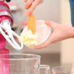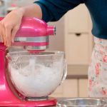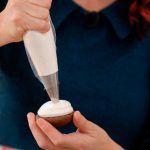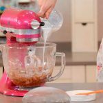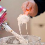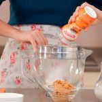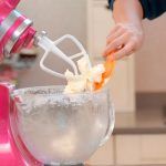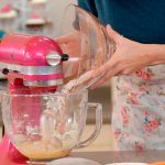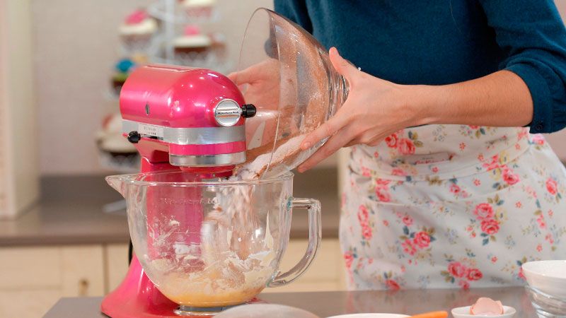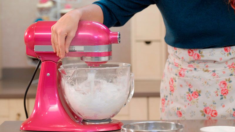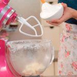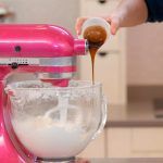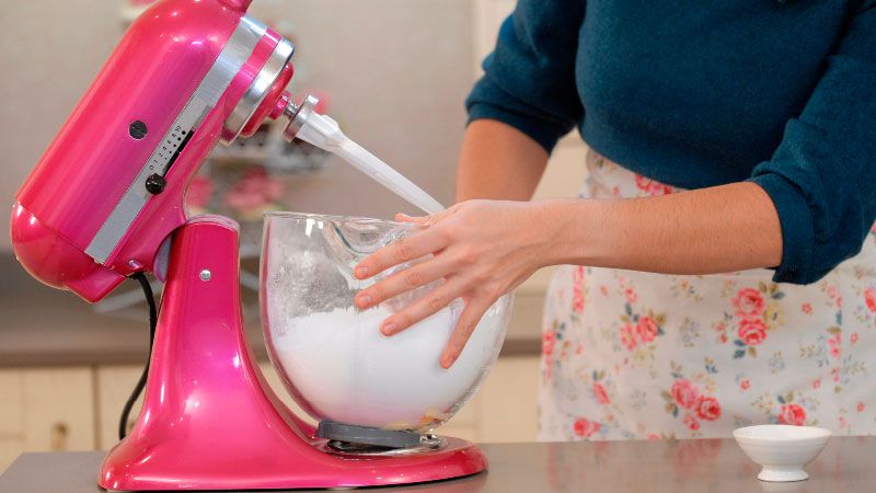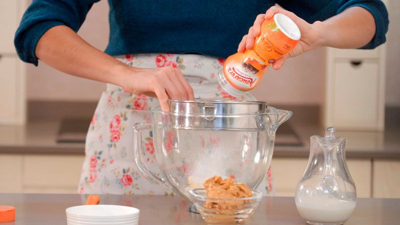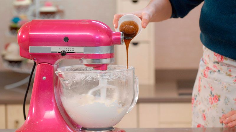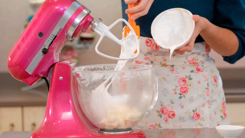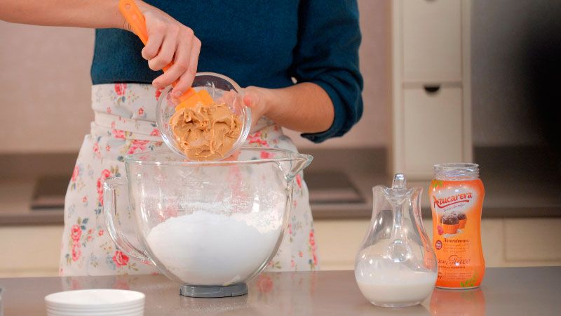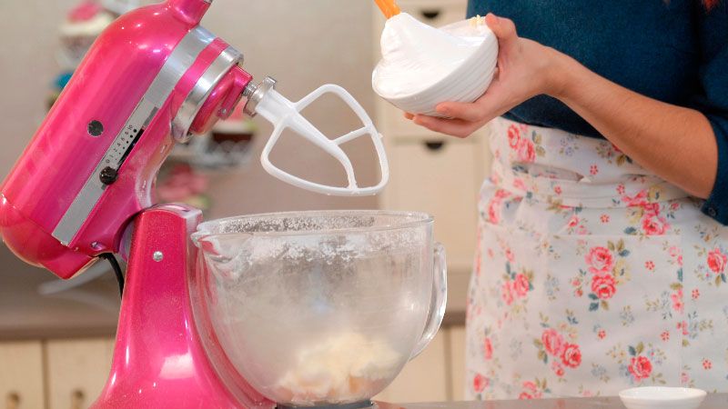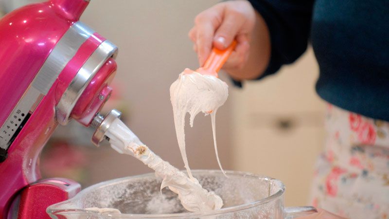 Una vez la mezcla es blanca y esponjosa, añade el fluff o crema de nubes y la vainilla, y bate de nuevo, aumentando la velocidad hasta que la mezcla sea homogénea y cremosa.