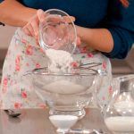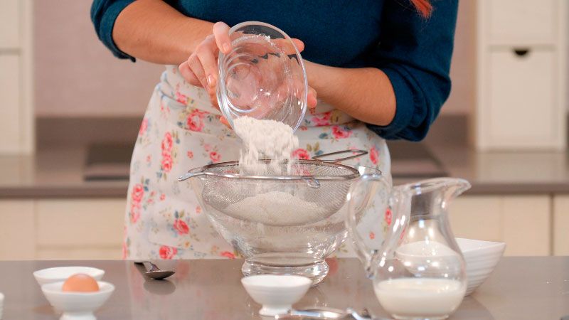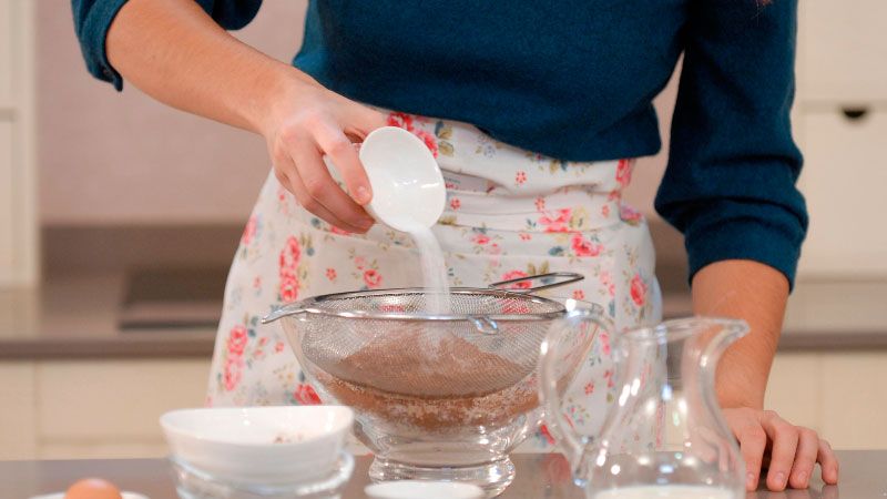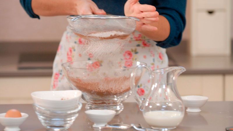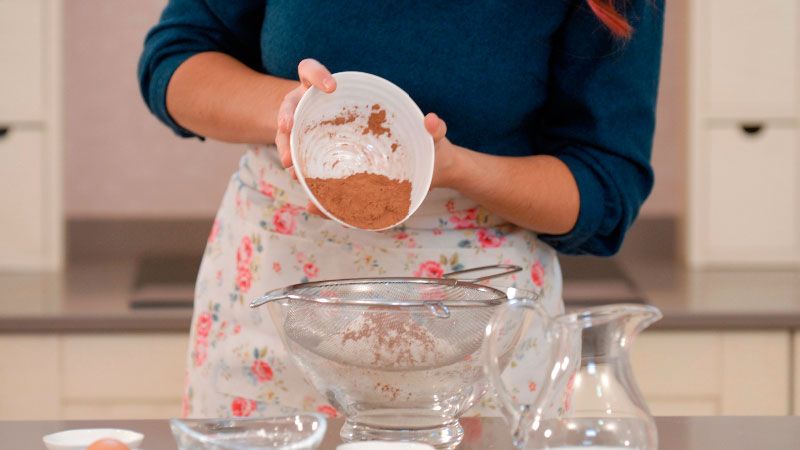 Tamiza la harina con el cacao y el bicarbonato y resérvalo.