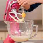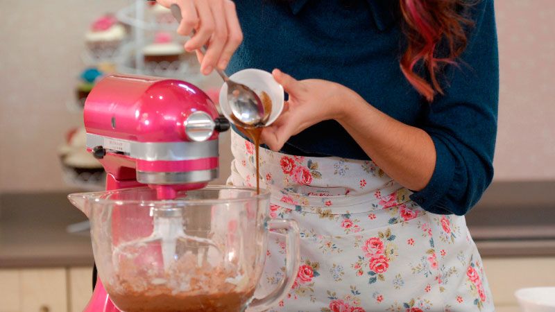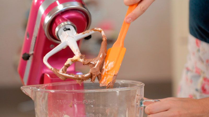 Incorpora a la mezcla el huevo y bate de nuevo. Baja la velocidad de la batidora y añade la mezcla de harina, cacao y bicarbonato. Acto seguido, añade la vainilla en pasta.