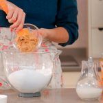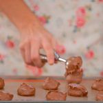Reparte porciones de masa con la cuchara de 39 mm de diámetro, que tiene una capacidad de 2 cucharadas, bien espaciadas en las bandejas.
