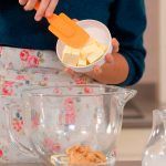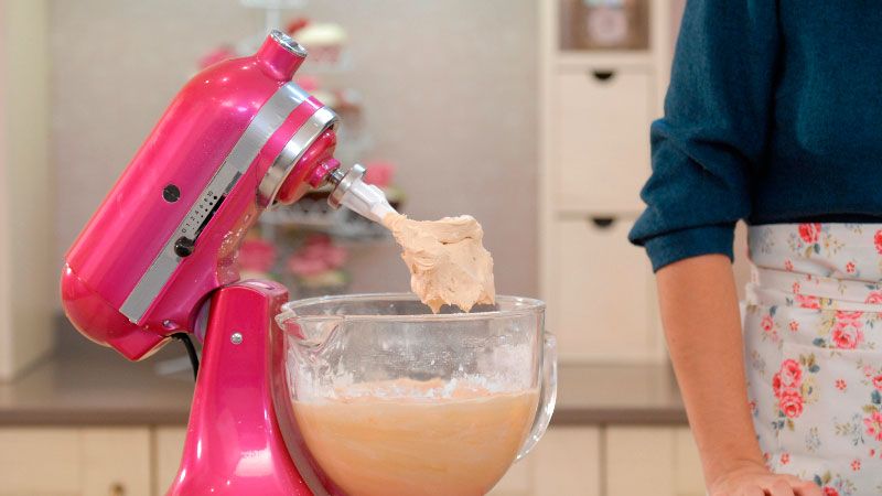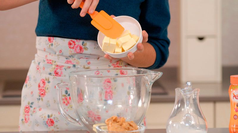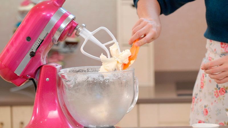 Bate la mantequilla con el azúcar glacé hasta que la mezcla se aclare y sea cremosa.
