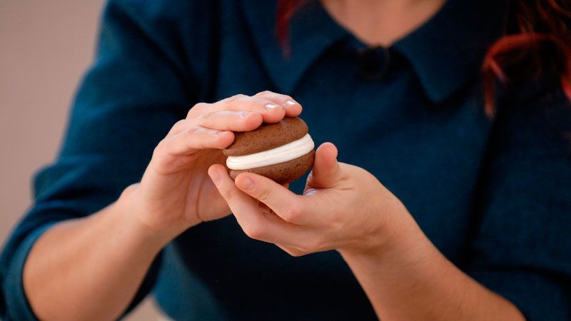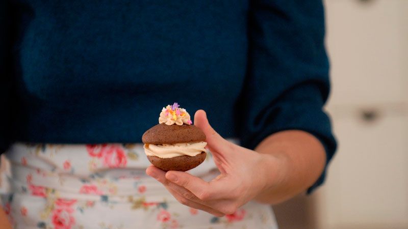 El programa 14 de Cupcakes Maniacs ¡se llena de sabor! Descubre junto a Alma cómo preparar una receta de lo más jugosa y tierna: whoopie pies de chocolate. Además, traemos dos rellenos, uno de crema de mantequilla de cacahuete y otro de crema de nubes.