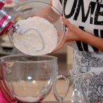 Pon en el bol de la batidora la mitad de la harina con la levadura; mezcla todo bien y reserva.