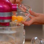 Pon a batir la batidora a velocidad baja la mezcla de harina y levadura, incorporando poco a poco la leche con la mantequilla, y después los huevos, uno a uno.