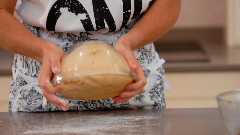 Una vez la masa ha doblado su tamaño, aplástala con el puño para dejar que pierda el aire y espera 10 minutos.
