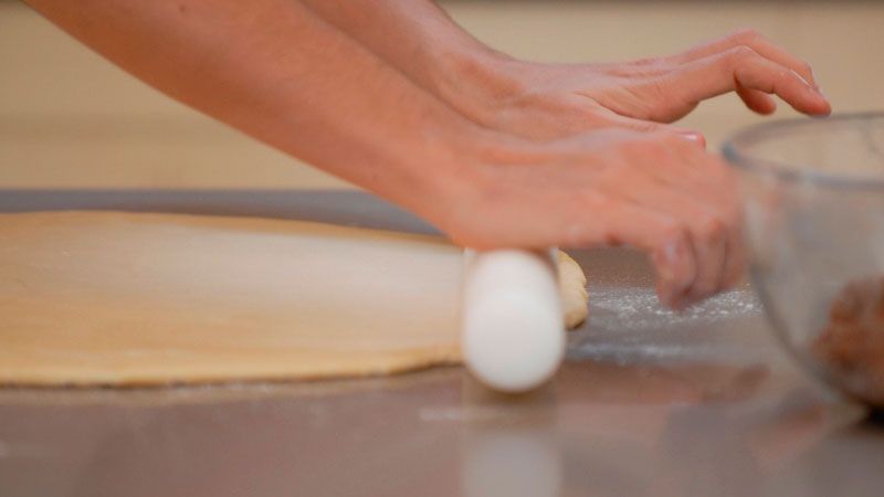 Estira la masa en una superficie enharinada hasta formar la forma de un cuadrado de 30 cm x 30 cm.