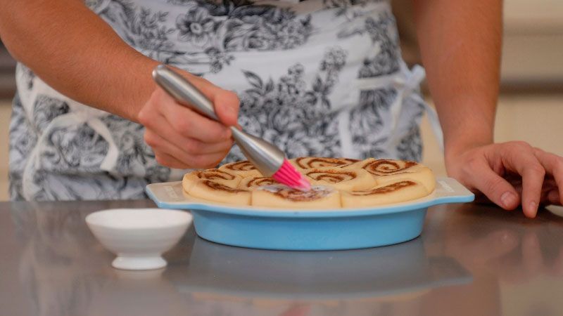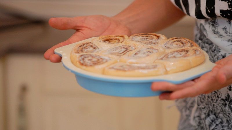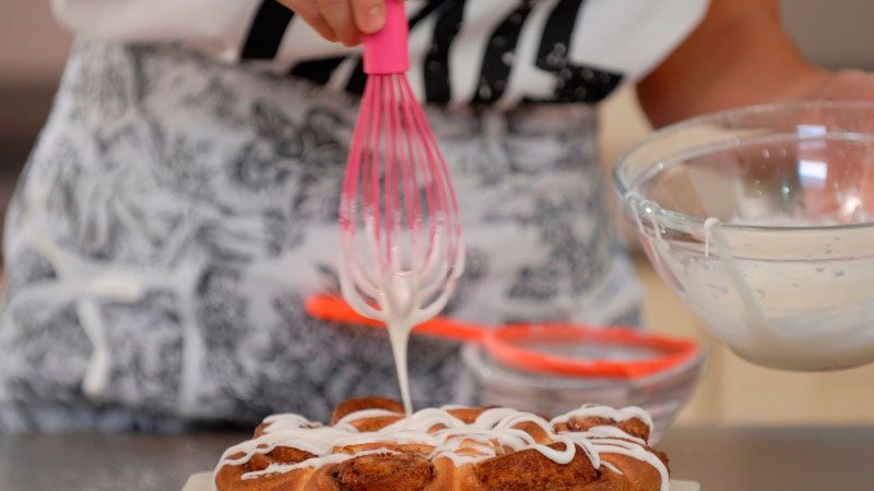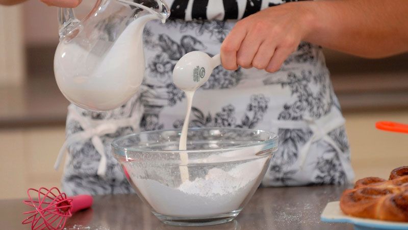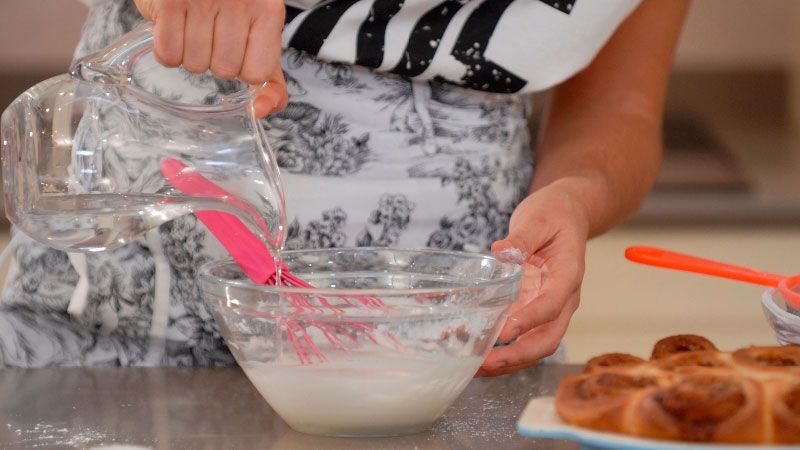 Echa la mezcla sobre los rollos con la ayuda de la varilla y... ¡Ya tendrás tus rollos de canela listos para servir!