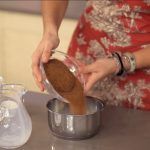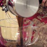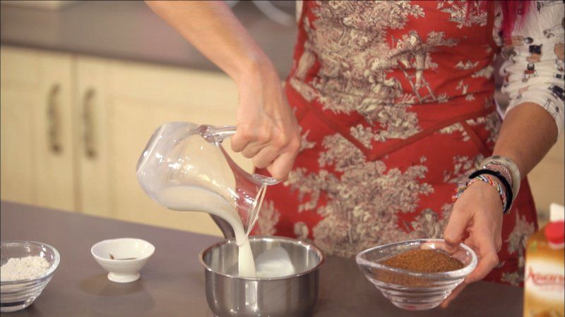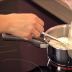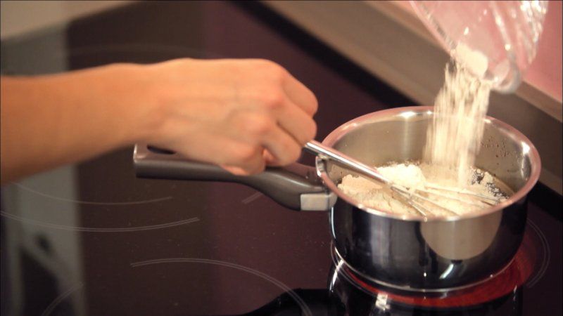 Añade la harina, bate enérgicamente con unas varillas, para que no se hagan grumos.