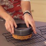 Cuando los moldes estén templados al tacto desmóldalos y deja que los 3 bizcochos enfríen por completo sobre una rejilla.