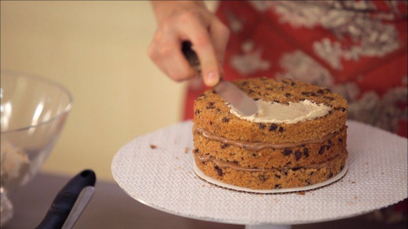 Esta tarta de cookies con crema se prepara con azúcar moreno para realzar el sabor tostado y característico de las tradicionales Cookies Americanas.