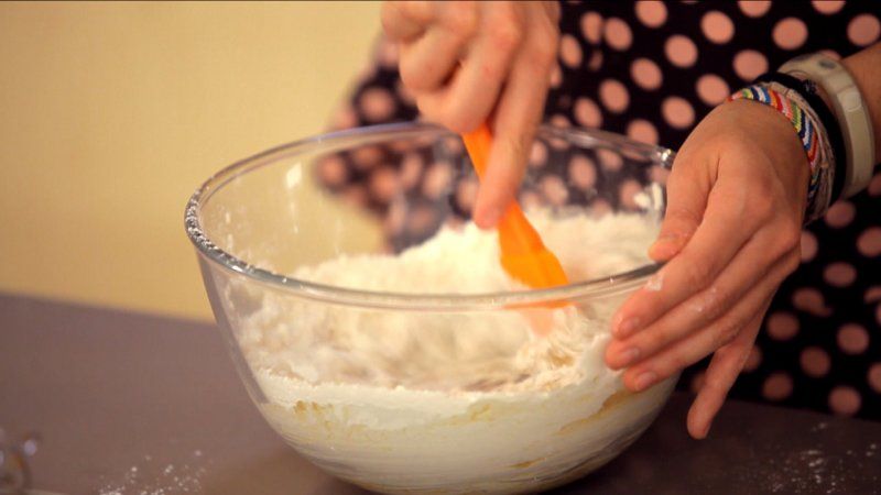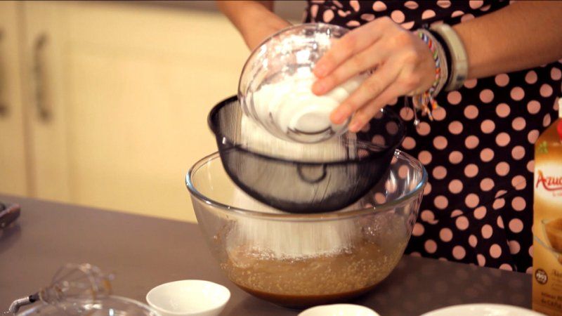 A continuación, tamiza la harina y la levadura y añádelas a la mezcla.