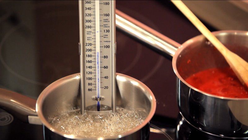 Calienta la preparación hasta que la temperatura del termómetro de azúcar alcance los 115°-120°.