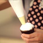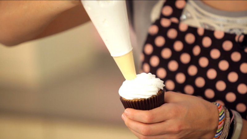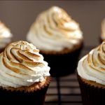 Por último decora la superficie del cupcake con el merengue, ayudándote de una manga pastelera con una boquilla de estrella abierta.