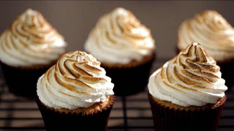 Para terminar, carameliza con un soplete la parte exterior del merengue y tendrás listos tus cupcakes de limón al merengue de frambuesa.