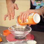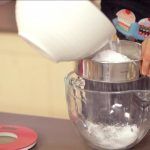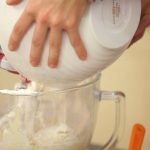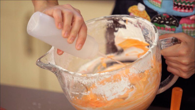 Bate todos los ingredientes (menos los colorantes) a la velocidad mínima de la batidora durante 5 minutos, hasta que parezca pasta de dientes.