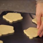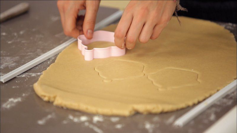 Estira la masa sobre la mesa y, con ayuda de un cortador de galletas en forma de cupcake, ve haciendo las galletas.