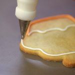 Separa una buena cucharada de cada color y mete cada cucharada en una manga pastelera con boquilla nº3. Para hacer los bordes del dibujo.