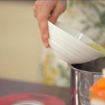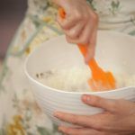 Añade el zumo de naranja y la ralladura de naranja y, por último, mezcla la leche y las almendras laminadas.