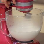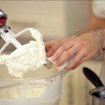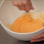 Cuando se haya disuelto el azúcar, monta las claras de huevo a punto de nieve. Una vez tengas el merengue listo, incorpora la mantequilla y el extracto de naranja.