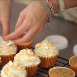 Puedes decorar tus cupcakes con la buttercream de naranja, con ayuda de una manga pastelera de boquilla grande de estrella.