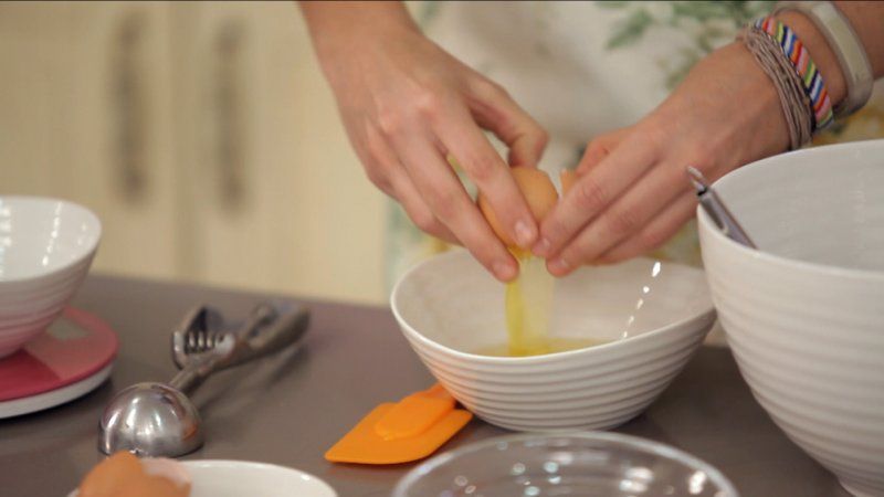 Vierte y bate los huevos, uno a uno, en la preparación.