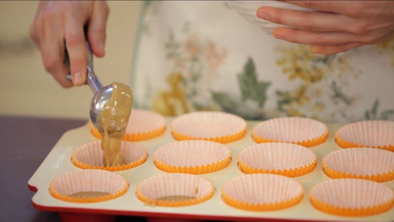 Vierte la masa en tu bandeja para cupcakes y hornea durante 20 minutos a 180°.