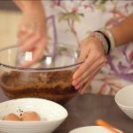 Incorpora la harina, batiendo de nuevo hasta que la mezcla sea homogénea, y por último las nueces.