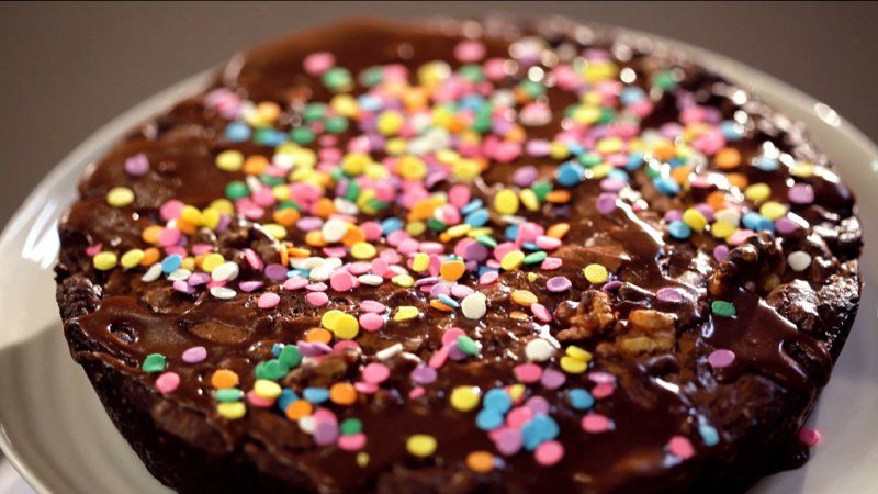Acompañado de un glaseado de chocolate con confeti de azúcar de colores, el resultado es increíble.