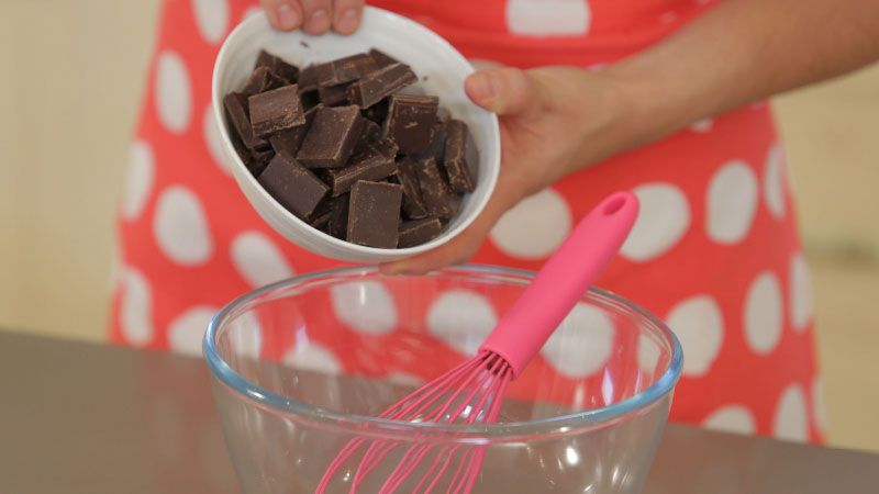 Calienta la nata de montar (mínimo 35% grasa) hasta que empiece a hervir. Cuando hierva, mézclala rápidamente con el chocolate negro cortado en trocitos.