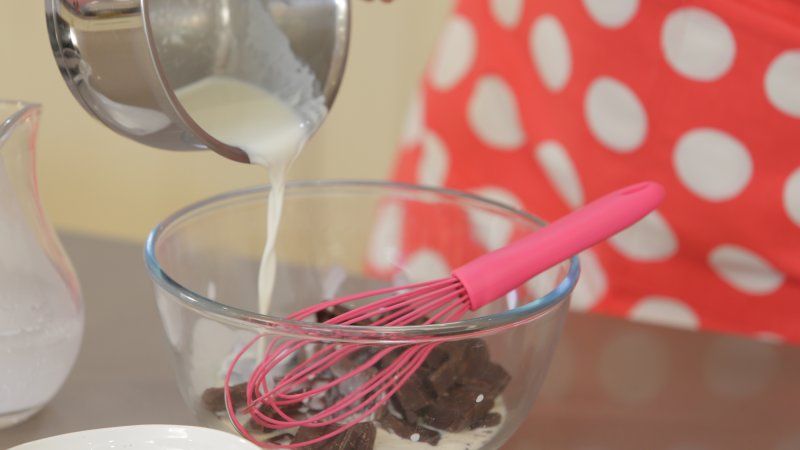 Comienza preparando el ganache de decoración para dar tiempo a que se enfríe.