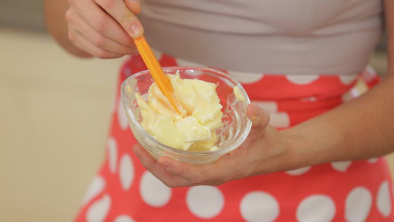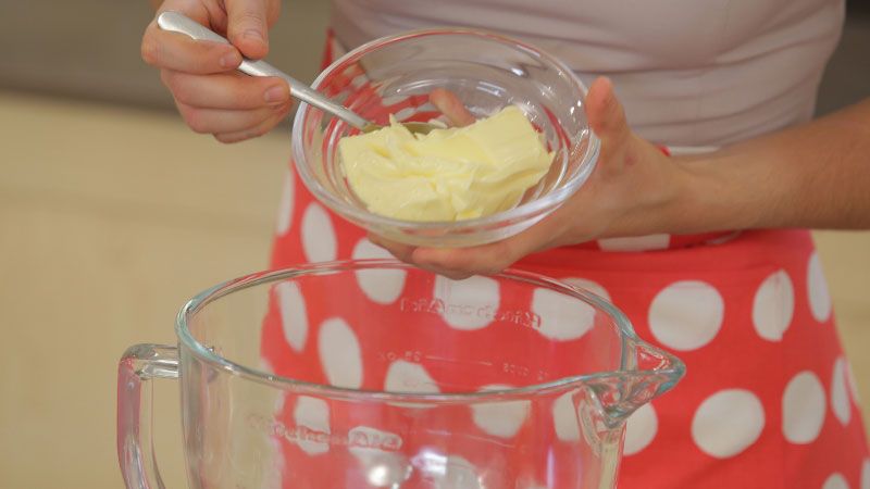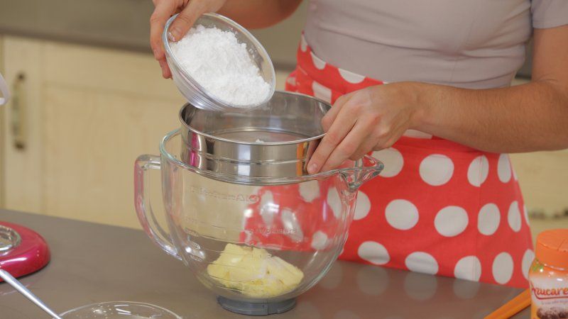 Para preparar la crema de relleno, bate la mantequilla y el azúcar glacé a velocidad media-alta durante 5 minutos, hasta que la mezcla se integre.
