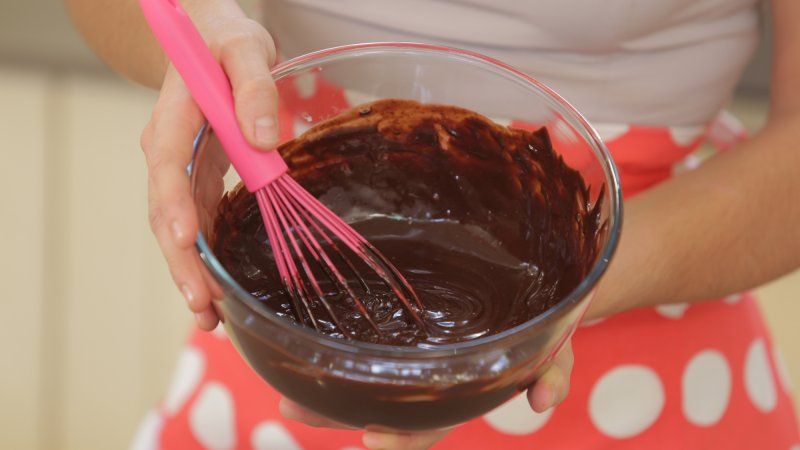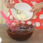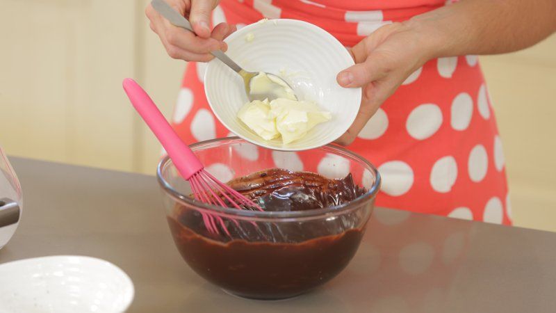 Remueve hasta que se derrita el chocolate y la mezcla sea homogénea. Cuando emulsione añade la mantequilla.
