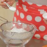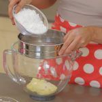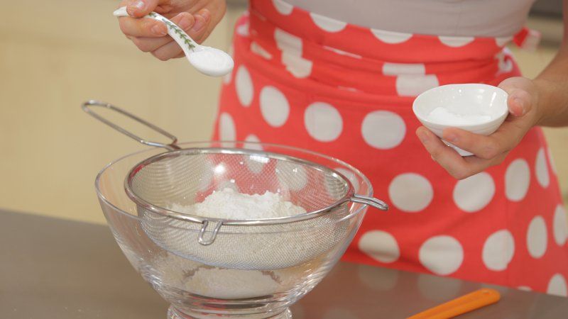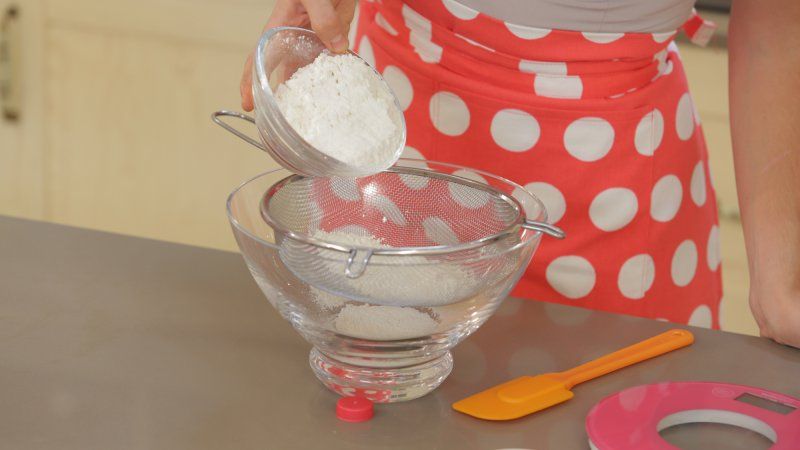 Tamiza la harina con la levadura química y añádela a la mezcla anterior.