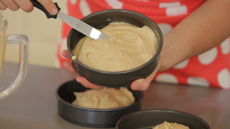 Reparte la masa entre los tres moldes y hornea durante 20-25 minutos con calor arriba y abajo.