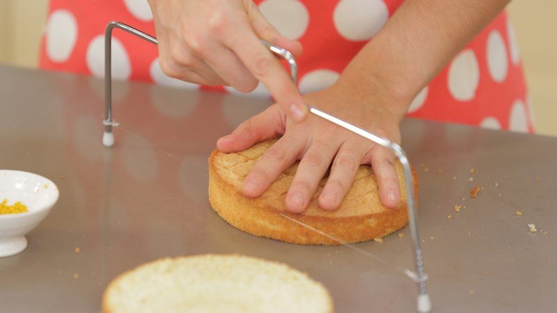 Corta la capa superior de todos tus bizcochos con un cuchillo afilado.