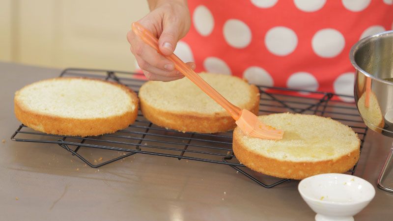 A continuación, pincha tus bizcochos muchas veces con un palillo y píntalos con el almíbar.