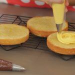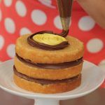 Pasado ese tiempo, coloca un bizcocho sobre otro y decora la última capa como las anteriores.