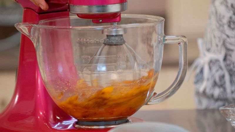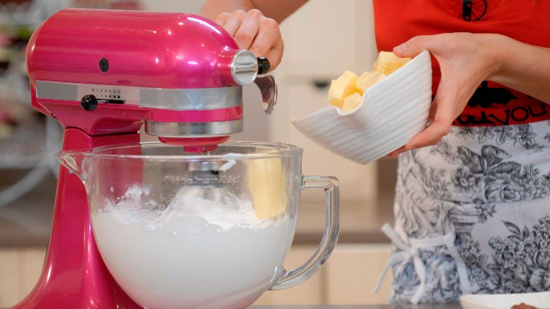 Añade la mantequilla a temperatura ambiente, batiendo a velocidad media, hasta que la crema esté homogénea y muy sedosa.