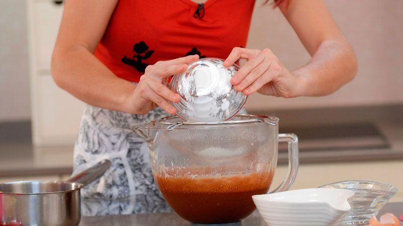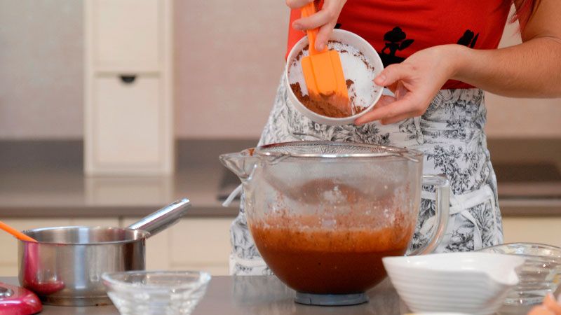 Tamiza el cacao en polvo y la harina de maíz y mézclalo hasta que esté homogénea.