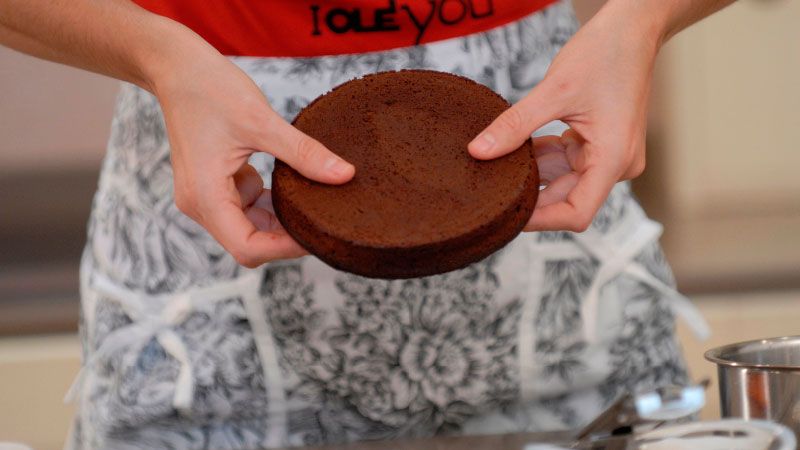 Hornea durante 25-30 minutos a 180° o hasta que los bordes del bizcocho se separen ligeramente del molde y al introducir un palillo salga limpio.