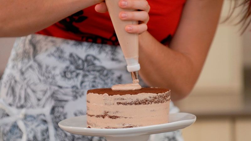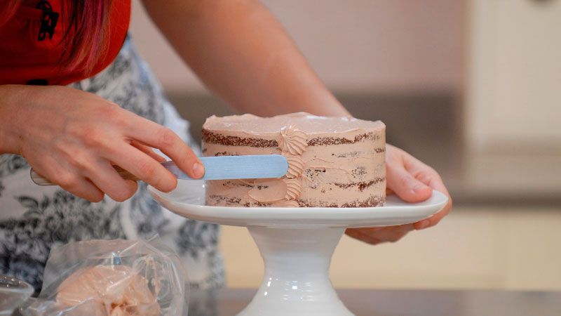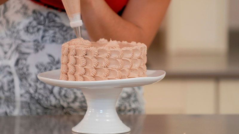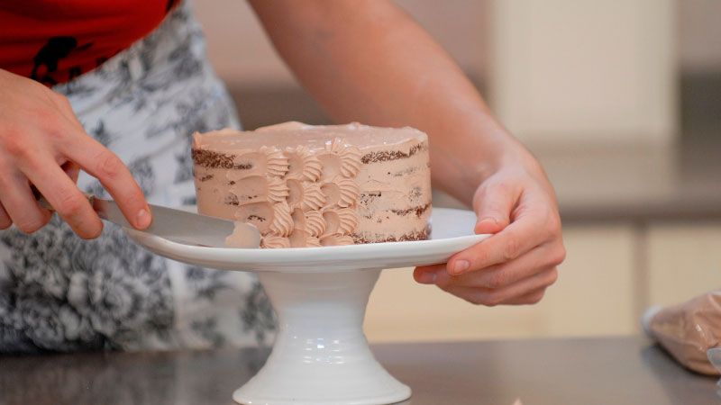 Por último, decora tu tarta usando una boquilla de estrella, haciendo filas de bolas y aplastando con la espátula.