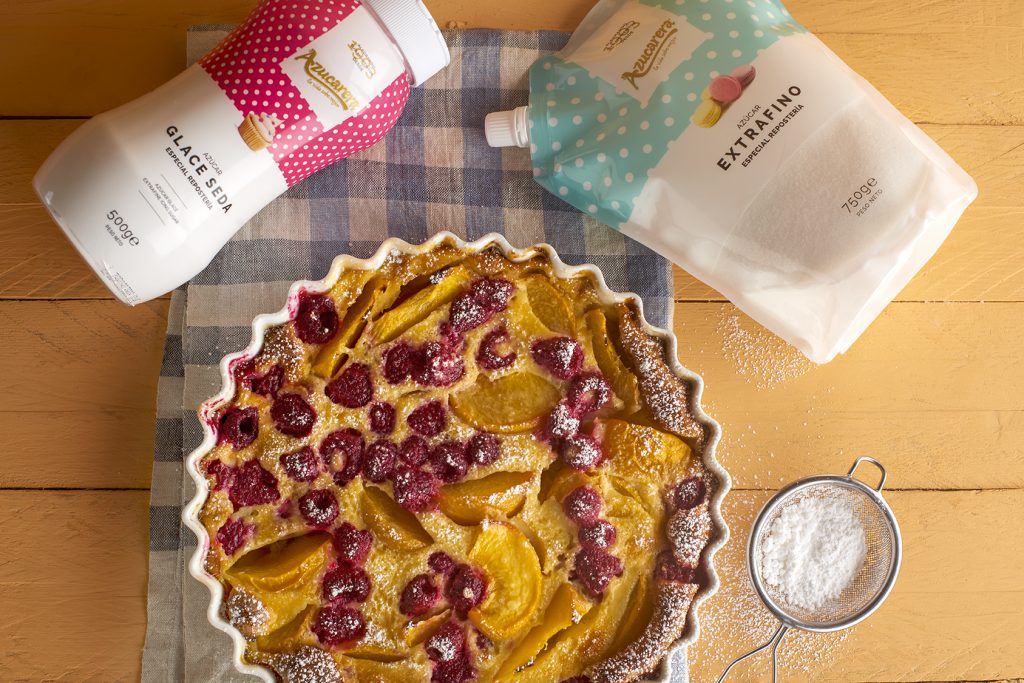 Hay tartas que por lo fáciles que son de preparar, lo deliciosas que están y lo espectaculares que lucen son un descubrimiento de esos que se sabe que volverán antes o después a nuestra mesa. El clafoutis de melocotón y frambuesa es una de ellas.