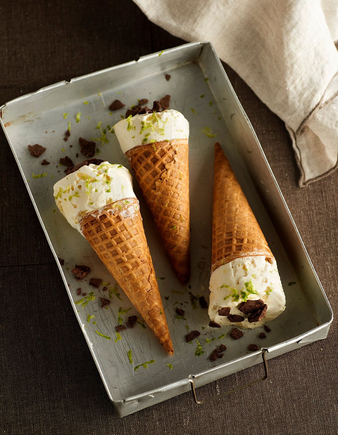 Aunque estemos en Otoño, con esta temperatura sigue apeteciéndonos un heladito de vez en cuando. Resístete a la llegada del frío con estos originales cucuruchos de jengibre y lima.