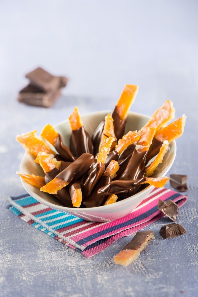 La naranja y el chocolate ofrecen un perfecto maridaje en sabor, textura y color. Nuestra propuesta son unas deliciosas tiras de cáscara de naranja confitadas bañadas en chocolate, un dulce apetecible en cualquier momento del día.