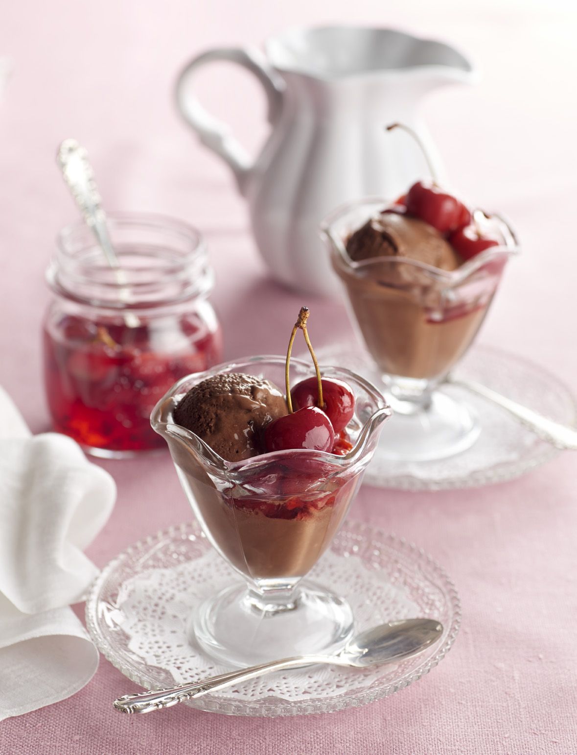 Una de las cosas que más nos gustan del verano son los helados. Y sobre todo el helado de chocolate, todo un clásico, al que vamos a acompañar con unas cerezas confitadas.