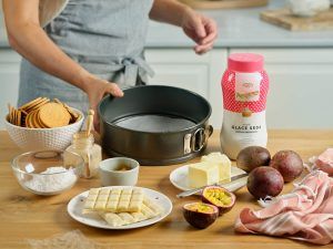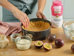 6.  Verter la preparación sobre la base de galleta y dejar reposar en la nevera durante 4 horas como mínimo.