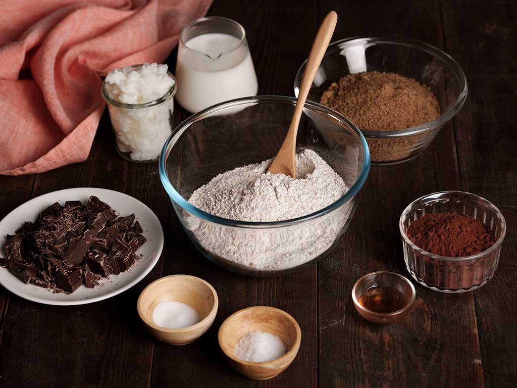 - Añadimos la vainilla y la leche y seguimos batiendo. Agregamos el cacao, el bicarbonato y la sal, mezclamos bien y envolvemos la mezcla en papel film. Introducimos en el frigorífico y dejamos endurecer unos 20 minutos.