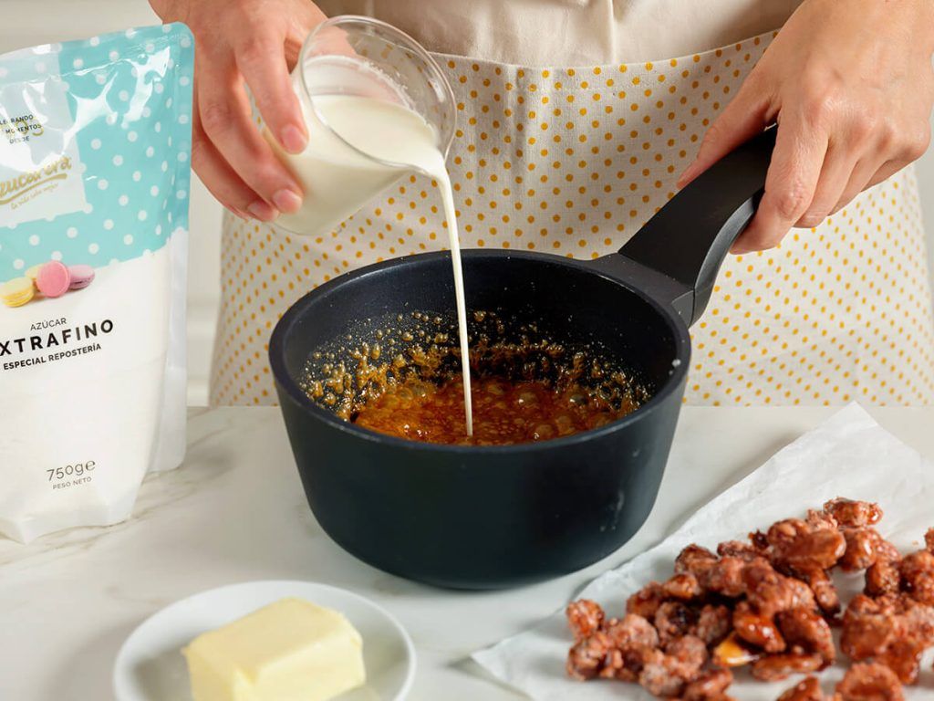 3. Colocar de nuevo sobre el fuego y caramelizar rápidamente, para conseguir una capa fina marrón y crujiente.
