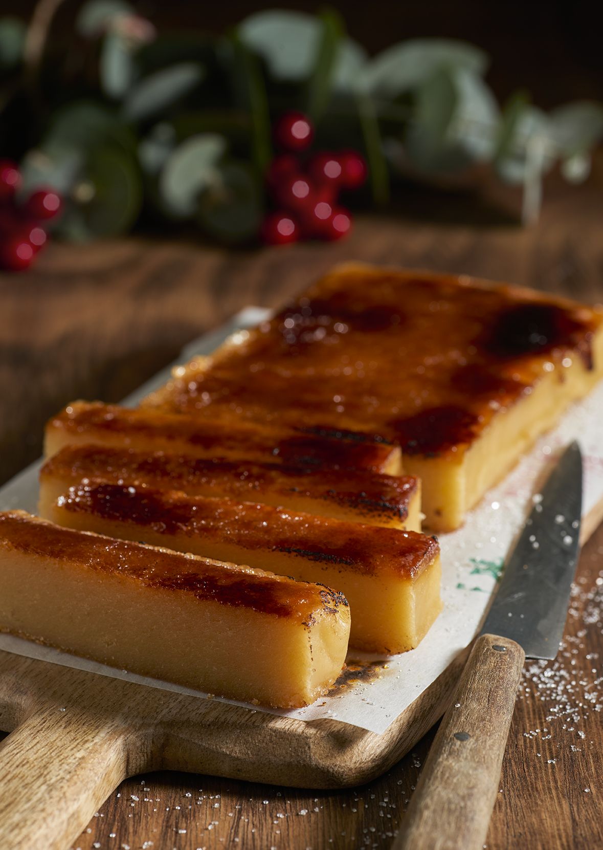3. Desmoldar el turrón, cubrirlo con la yema y espolvorearla con el azúcar. Quemarlo y dejar enfriar unos minutos antes de servir.